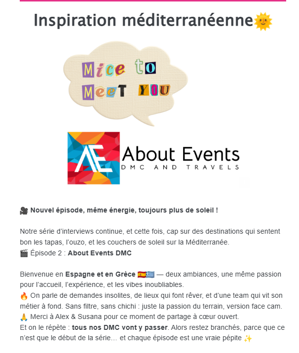 Deux voix, deux visions du voyage : Luminalis nous embarque entre Balkans et mer Adriatique (Monténégro, Albanie, Serbie), pendant que About Events nous fait vibrer au rythme ensoleillé de l’Espagne et de la Grèce.